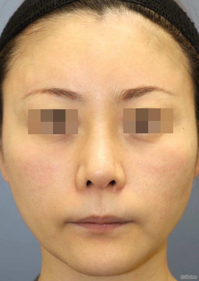 手術前の正面です。 10年以上前に他院でL型プロテーゼを入れていらっしゃいました。 L型プロテーゼの影響で鼻先が上がっていました。 鼻先を伸ばして下向きに整えるため、 鼻中隔延長術+他院鼻プロテーゼ入れ替え術+眉間プロテーゼ(オーダーメイドプロテーゼ)を行いました。 術後7週間後に鼻根部のアクアミド除去を行っています。 鼻中隔延長術+他院鼻プロテーゼ入れ替え術+眉間プロテーゼ手術後2ヶ月の経過写真です。 術後は眉間から鼻筋が真っ直ぐきれいに通り、 鼻先は下向きになりました。 手術前の斜めからです。 手術後2ヶ月の斜めからです。 手術前の横からです。 手術後2ヶ月の横からです。 眉間から鼻先にかけてバランス良く高くなりました。 口もとが控えめに見えるようになりました。 ・費用(税込、麻酔代別) 鼻中隔延長術 ¥660,000 他院鼻プロテーゼ入れ替え術 ¥440,000 眉間プロテーゼ ¥330,000 特別注文プロテーゼ +¥110,000 他院修正術 ¥330,000 ・リスク・副作用(起こり得る可能性のあること) 腫れ、内出血、鼻出血、鼻づまり 鼻柱の傷跡 鼻先、耳介の知覚低下 鼻の傾き 鼻尖部の挙上ができない 鼻の形の左右差 プロテーゼの動揺 鼻中隔延長術 鼻プロテーゼ入れ替え術 眉間プロテーゼ にほんブログ村 美容外科 ブログランキングへ Tags:眉間プロテーゼ鼻プロテーゼ入れ替え術鼻中隔延長術