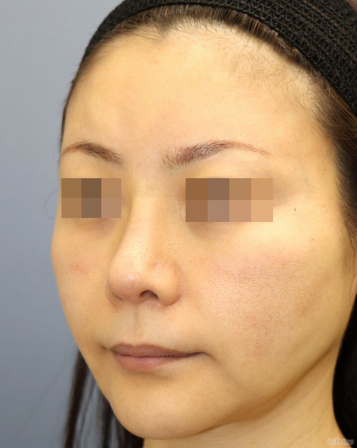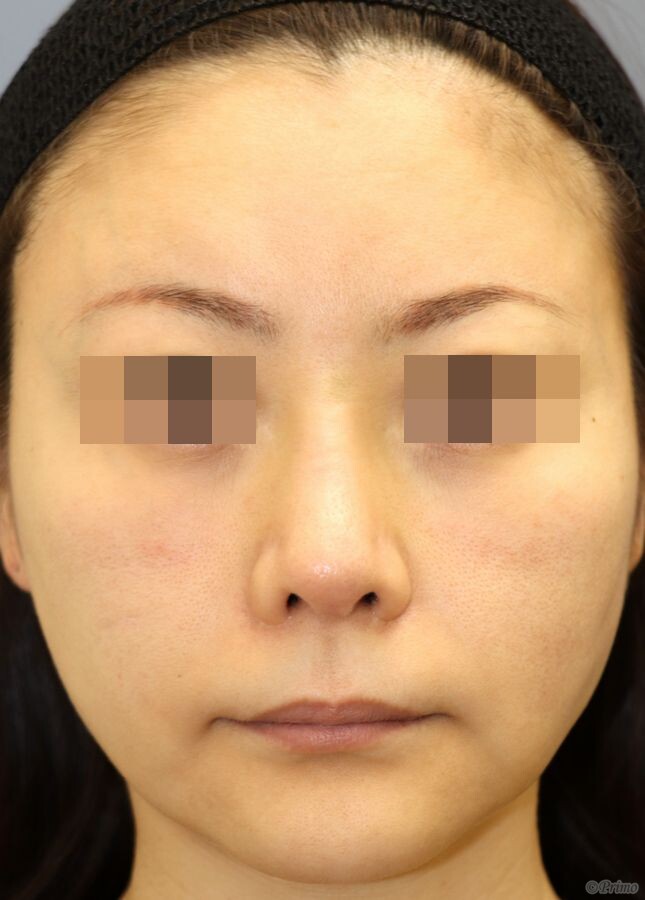 手術前の正面です。 10年以上前に他院でL型プロテーゼを入れていらっしゃいました。 L型プロテーゼの影響で鼻先が上がっていました。 鼻先を伸ばして下向きに整えるため、 鼻中隔延長術+他院鼻プロテーゼ入れ替え術+眉間プロテーゼ(オーダーメイドプロテーゼ)を行いました。 術後7週間後に鼻根部のアクアミド除去を行っています。 鼻中隔延長術+他院鼻プロテーゼ入れ替え術+眉間プロテーゼ手術後3ヶ月の経過写真です。 術後は鼻先が下向きに高くなり、 鼻の下が短く見えるようになりました。 手術前の斜めからです。 手術後3ヶ月の斜めからです。 手術前の横からです。 手術後3ヶ月の横からです。 眉間から鼻先までバランス良く高くなり、 鼻先は下向きになりました。 ・費用(税込、麻酔代別) 鼻中隔延長術 ¥660,000 他院鼻プロテーゼ入れ替え術 ¥440,000 眉間プロテーゼ ¥330,000 特別注文プロテーゼ +¥110,000 他院修正術 ¥330,000 ・リスク・副作用(起こり得る可能性のあること) 腫れ、内出血、鼻出血、鼻づまり 鼻柱の傷跡 鼻先、耳介の知覚低下 鼻の傾き 鼻尖部の挙上ができない 鼻の形の左右差 プロテーゼの動揺 鼻中隔延長術 鼻プロテーゼ入れ替え術 眉間プロテーゼ にほんブログ村 美容外科 ブログランキングへ Tags:眉間プロテーゼ鼻プロテーゼ入れ替え術鼻中隔延長術