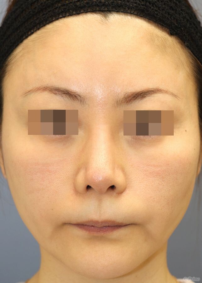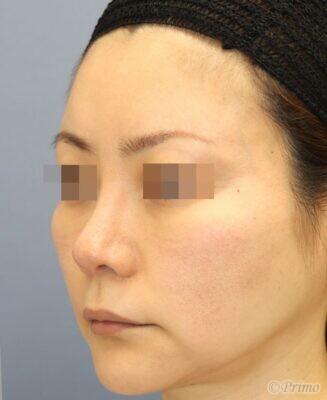 手術前の正面です。 10年以上前に他院でL型プロテーゼを入れていらっしゃいました。 L型プロテーゼの影響で鼻先が上がっていました。 鼻先を伸ばして下向きに整えるため、 鼻中隔延長術+他院鼻プロテーゼ入れ替え術+眉間プロテーゼ(オーダーメイドプロテーゼ)を行いました。 術後7週間後に鼻根部のアクアミド除去を行っています。 鼻中隔延長術+他院鼻プロテーゼ入れ替え術+眉間プロテーゼ手術後7ヶ月の経過写真です。 術後は眉間から鼻筋が真っ直ぐきれいに通り、 鼻先は下向きに高くなりました。 手術前の斜めからです。 手術後7ヶ月の斜めからです。 手術前の横からです。 手術後7ヶ月の横からです。 眉間から鼻先にかけてバランス良く高くなりました。 口もとが控えめに見えるようになりました。 ・費用(税込、麻酔代別) 鼻中隔延長術 ¥660,000 他院鼻プロテーゼ入れ替え術 ¥440,000 眉間プロテーゼ ¥330,000 特別注文プロテーゼ +¥110,000 他院修正術 ¥330,000 ・リスク・副作用(起こり得る可能性のあること) 腫れ、内出血、鼻出血、鼻づまり 鼻柱の傷跡 鼻先、耳介の知覚低下 鼻の傾き 鼻尖部の挙上ができない 鼻の形の左右差 プロテーゼの動揺 鼻中隔延長術 鼻プロテーゼ入れ替え術 眉間プロテーゼ にほんブログ村 美容外科 ブログランキングへ Tags:眉間プロテーゼ鼻プロテーゼ入れ替え術鼻中隔延長術