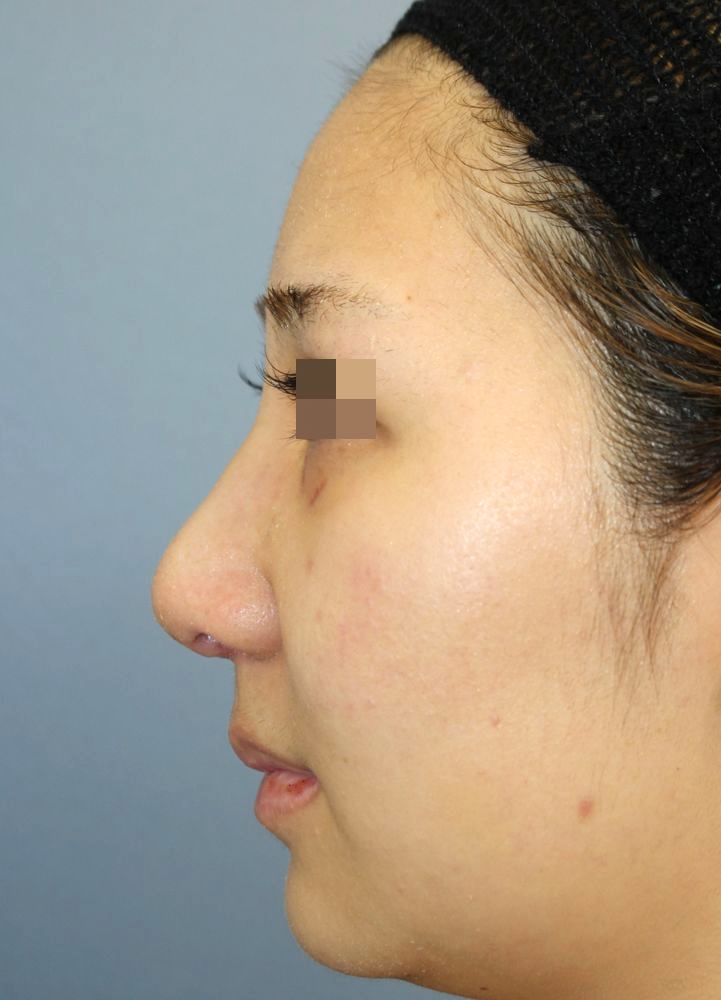 術後は鼻中隔延長術の効果で鼻先が高くなりました。