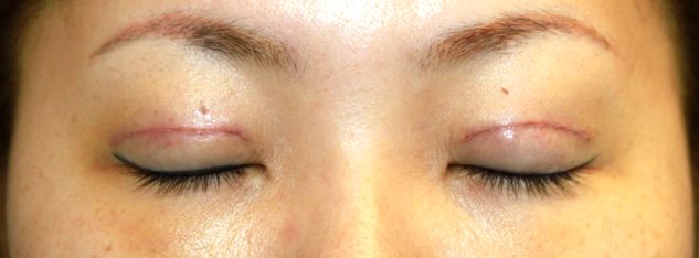 全切開+上眼瞼脱脂術後6日目の経過写真です。
