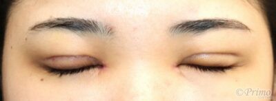 手術前のお目元です。 目をパッチリ大きく、平行型に、そしてスッキリさせたいとのご希望で 当院にて眼瞼下垂手術+目頭切開+ROOF切除を行いました。 手術後1週間の開瞼時です。 make up なしです。 目の開きが改善し、しっかりとした平行型二重が形成されました。 手術後1週間の閉瞼時です。 経過のご参考になさってください。 ・費用(税込み、麻酔代別) 眼瞼下垂手術 ¥660,000 目頭切開術 ¥275,000 ROOF切除術 ¥330,000 ・リスク・副作用(起こり得る可能性のあること) 腫れ、内出血 瞼の違和感 睫毛側皮膚の知覚低下 ラインの消失 瞼の形態の変化、顔の印象の変化 閉瞼不全、ドライアイ ヘリング現象 眼瞼下垂 目頭切開 ROOF切除術 にほんブログ村 美容外科 ブログランキングへ