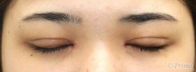 手術前のお目元です。 目をパッチリ大きく、平行型に、そしてスッキリさせたいとのご希望で 当院にて眼瞼下垂手術+目頭切開+ROOF切除を行いました。 手術後2週間の開瞼時です。 make up なしです。 目の開きが改善し、しっかりとした平行型二重が形成されました。 手術後2週間の閉瞼時です。 経過のご参考になさってください。 ・費用(税込み、麻酔代別) 眼瞼下垂手術 ¥660,000 目頭切開術 ¥275,000 ROOF切除術 ¥330,000 ・リスク・副作用(起こり得る可能性のあること) 腫れ、内出血 瞼の違和感 睫毛側皮膚の知覚低下 ラインの消失 瞼の形態の変化、顔の印象の変化 閉瞼不全、ドライアイ ヘリング現象 眼瞼下垂 目頭切開 ROOF切除術 にほんブログ村 美容外科 ブログランキングへ