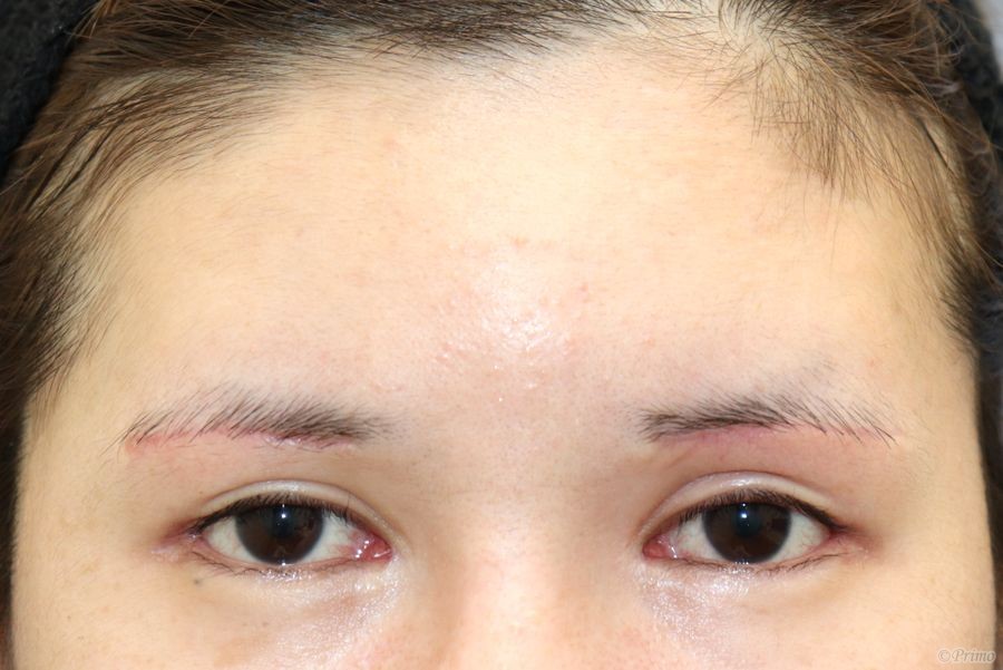 手術前の目元です。 術前は他院で埋没法、二重全切開、目頭切開、目尻切開などを受けていらっしゃいました。 まぶたのかぶさりを改善する目的で、 当院で上眼瞼リフト(眉毛下切開)を行いました。 また術後1ヶ月で下眼瞼拡大術+目尻切開を行っています。 上眼瞼リフト(眉毛下切開)手術後2.5ヶ月の経過写真です。 make upなしです。 術後はまぶたのかぶさりが減って眉毛の位置が下がりました。 ・費用(税込、麻酔代別) 上眼瞼リフト ¥385,000 ・リスク・副作用(起こり得る可能性のあること) 腫れ、内出血、瞼の違和感、傷跡 埋没した吸収糸の露出 眉毛の形態の変化、二重のラインの変化、瞼の形態の変化 ドライアイ、閉瞼不全 ドッグイヤー 上眼瞼リフト(眉毛下切開) にほんブログ村 美容外科ブログランキングへ Tags:上眼瞼リフト