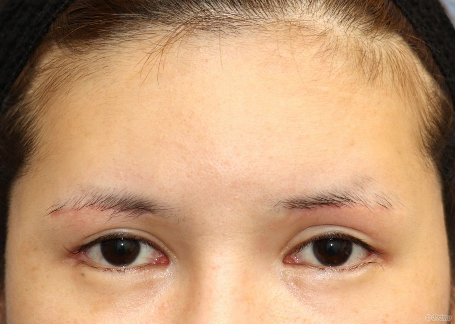 手術前の目元です。 術前は他院で埋没法、二重全切開、目頭切開、目尻切開などを受けていらっしゃいました。 まぶたのかぶさりを改善する目的で、 当院で上眼瞼リフト(眉毛下切開)を行いました。 また術後1ヶ月で下眼瞼拡大術+目尻切開を行っています。 上眼瞼リフト(眉毛下切開)手術後4ヶ月の経過写真です。 make upなしです。 術後はまぶたのかぶさりが減って眉毛の位置が下がりました。 ・費用(税込、麻酔代別) 上眼瞼リフト ¥385,000 ・リスク・副作用(起こり得る可能性のあること) 腫れ、内出血、瞼の違和感、傷跡 埋没した吸収糸の露出 眉毛の形態の変化、二重のラインの変化、瞼の形態の変化 ドライアイ、閉瞼不全 ドッグイヤー 上眼瞼リフト(眉毛下切開) にほんブログ村 美容外科ブログランキングへ Tags:上眼瞼リフト