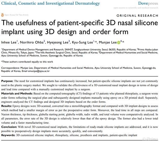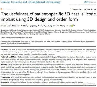 当院で取り扱っているオーダーメイドシリコンプロテーゼの論文が発表されました。