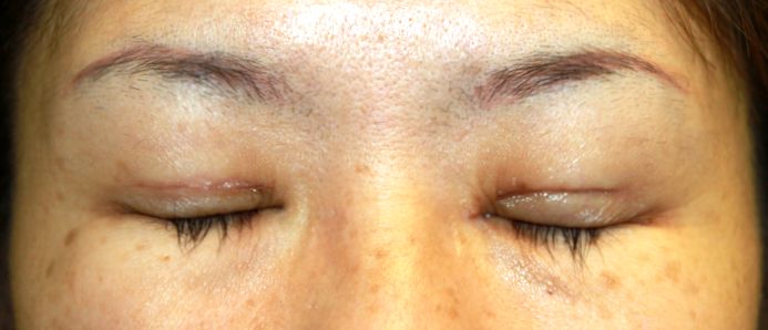 手術後1カ月の目を閉じたところです。