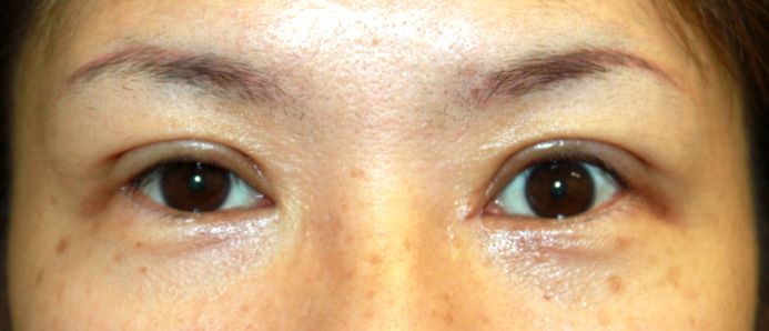 眼瞼下垂手術+左目頭切開手術後1カ月の経過写真です。