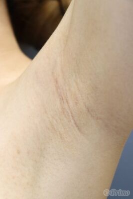 わきの下から大胸筋筋膜下にモティバエルゴノミクス265ccを挿入しました。