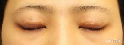 手術後2週間の目を閉じたところです。