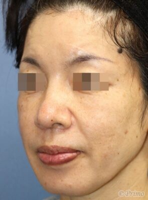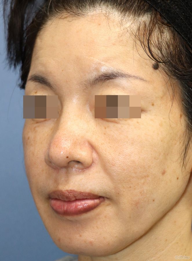 手術前の正面です。 15年前に他院でL型プロテーゼを入れ、鼻翼縮小術を受けていらっしゃいました。 鼻先が丸いのが気になり、I型プロテーゼの入れ替えを希望されました。 当院で鼻中隔延長術+他院鼻プロテーゼ入れ替え術+眉間プロテーゼを行いました。 鼻中隔延長術+他院鼻プロテーゼ入れ替え術+眉間プロテーゼ(オーダーメイドプロテーゼ)手術後1ヶ月の経過写真です。 鼻先が下向きに高くなり、小鼻がスリムに見えるようになりました。 鼻筋も眉間から真っ直ぐきれいに通りました。 手術前の斜めからです。 手術後1ヶ月の斜めからです。 手術前の横からです。 手術後1ヶ月の横からです。 術後は鼻根部から鼻先まで全体的にバランス良く高くなりました。 やや上向きだった鼻先は下向きになりました。 ・費用(税込、麻酔代別) 鼻中隔延長術 ¥660,000 他院鼻プロテーゼ入れ替え術 ¥440,000 眉間プロテーゼ ¥330,000 特別注文プロテーゼ +¥110,000 他院修正術 ¥330,000 ・リスク・副作用(起こり得る可能性のあること) 腫れ、内出血、鼻出血、鼻づまり 鼻柱の傷跡 鼻先、耳介の知覚低下 鼻の傾き 鼻尖部の挙上ができない 鼻の形の左右差 プロテーゼの動揺 鼻中隔延長術 鼻プロテーゼ入れ替え術 眉間プロテーゼ にほんブログ村 美容外科 ブログランキングへ Tags:眉間プロテーゼ鼻プロテーゼ入れ替え術鼻中隔延長術