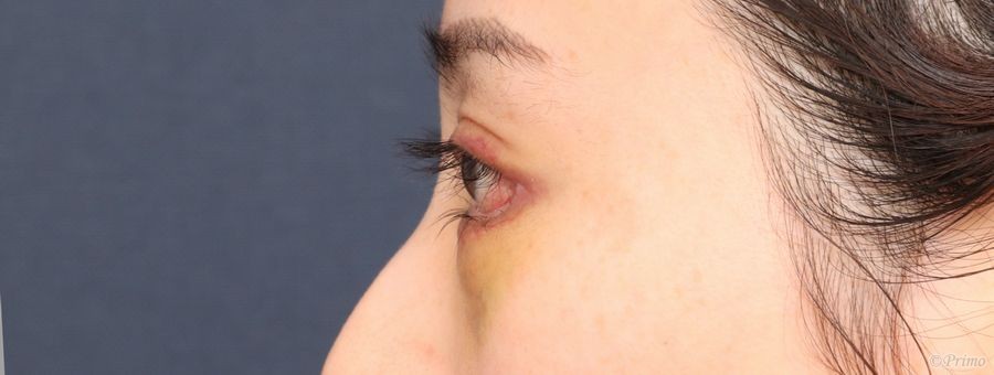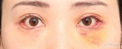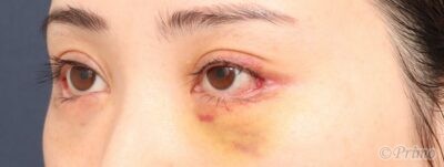 手術前の目元です。 術前5か月前に当院で眼瞼下垂手術、目頭切開を受けていらっしゃいました。 目を大きく、たれ目にしたいというご要望と、目の下のくまを改善する目的で、 当院で下眼瞼拡大術+目尻切開+下眼瞼脱脂術を行いました。 下眼瞼拡大術+下眼瞼脱脂術+目頭脂肪注入後1週間の経過写真です。 make upなしです。 まだ術後の腫れが目立ちますが、 下眼瞼拡大術と目尻切開の効果で目が外側下方向へ大きくなり、たれ目になりました。 手術前の斜めからです。 手術後1週間の斜めからです。 手術前の横からです。 手術後1週間の横からです。 目の下の膨らみが改善しました。 ・費用(税込、麻酔代別) 下眼瞼拡大術 ¥440,000 目尻切開術 ¥275,000 下眼瞼脱脂術(セット割引) ¥165,000 ・リスク・副作用(起こり得る可能性のあること) 腫れ、内出血、瞼の違和感、傷跡 埋没した吸収糸の露出 瞼の形態の変化 三白眼、逆さまつ毛 外反、複視 下眼瞼拡大術(たれ目形成) 目尻切開 下眼瞼脱脂(結膜側) にほんブログ村 美容外科ブログランキングへ Tags:下眼瞼拡大術下眼瞼脱脂術目尻切開