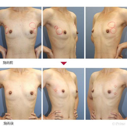 他院胸部ヒアルロン酸注入後しこり除去 術前後写真