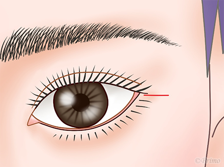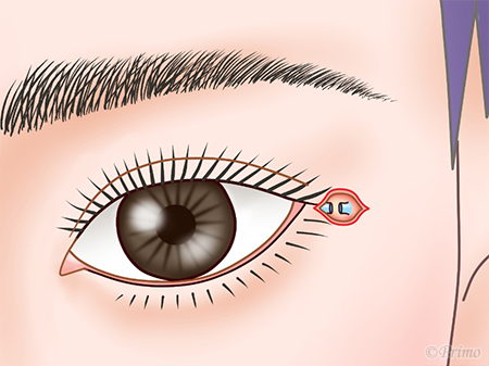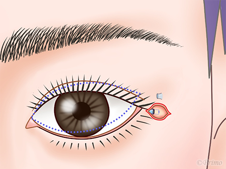 目尻外側の皮膚の皺に沿って約1cm切開します
