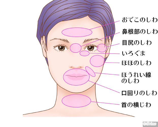皮膚に非常になじみやすく、額や目元、目尻のしわ、ほうれい線、マリオネットラインなどの細かいしわの改善に有効です。