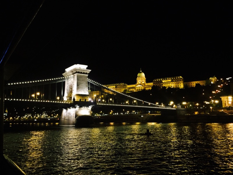 ブダペストといえば夜景が美しいことで有名なのですが、こちらがブダの王宮とくさり橋の夜景です
