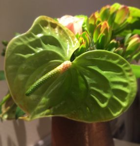 アンスリウムの一番の特徴は、ハート型のお花![]()